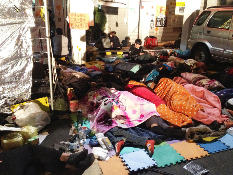 抗議活動僵持近3週,議場內及立院周圍青島東路與濟南路上的靜坐民眾免不了要躺下睡覺,攤在地上的「鋪蓋」從最初的厚紙板,到睡袋、「巧拼」墊、瑜珈墊、野餐墊及露營用的大型地墊,可謂琳瑯滿目。郭忠和表示,這些暫時性的「床墊」僅能讓民眾稍微舒服一些,但幾乎都偏薄,建議至少使用6至10公分厚的床墊,但在議場內外實不容易達成。