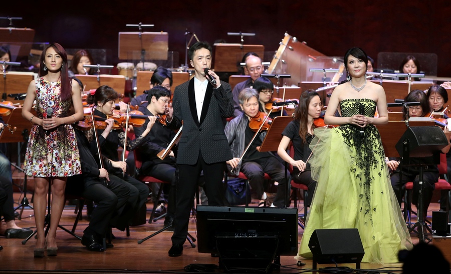 【台灣醒報記者杜胤廣台北報導】璽恩一席花色洋裝,與四位企業家聯手獻唱美國經典流行歌手喬許葛洛班的經典名歌《You raise me up》,在NSO龐大編制的交響樂襯托下,演繹出古典與流行交融的舞台魅力,傳唱出鼓舞人心的力量。NSO募款音樂會26日上午進行最後排練,陳致遠等四位企業家與璽恩希望將自身擁有的音樂素養,號召企業界贊助,將在27日下午呈現專業且密集訓練的成果。