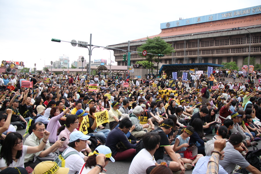 【台灣醒報記者賴義中台北報導】前民進黨主席林義雄禁食行動邁入第6天,多個反核團體27日發起「停建核四、還權於民」遊行聲援,號召數萬民眾到台北車站前行使「不核作運動」,就地坐下、躺下來占領忠孝西路;晚間6時,主辦單位稱將分流部分群眾回凱道,其餘就地繼續占領。針對群眾的行動,中正一副分局長李權哲表示,正和抗議群眾協調,將以善意勸離為主。