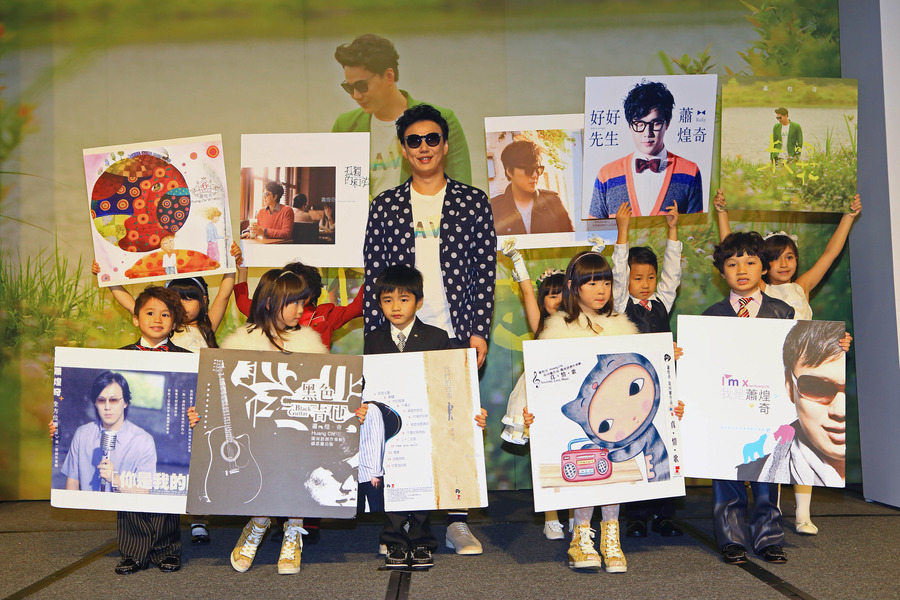 蕭煌奇和小朋友共同合照,人手一張專輯,活潑又具有特色。(photo by華納唱片)