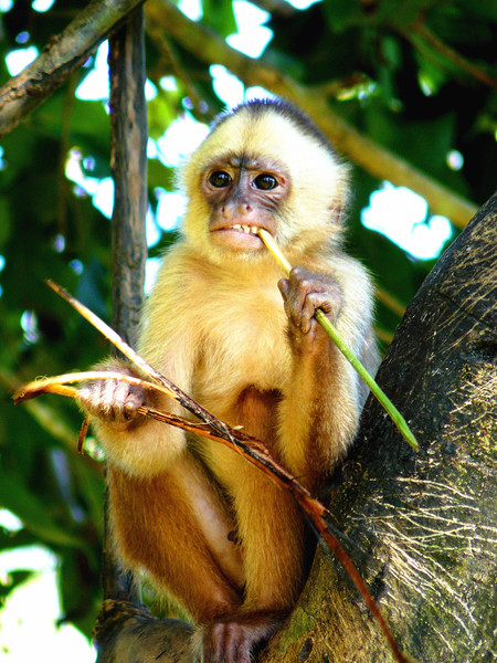 過去研究即曾指出,靈長類在缺乏水果等主食的季節,會改吃樹根、植物塊莖等「備案食物」,這些食物也為靈長類帶來強壯的下顎、堅硬的牙齒及「來者不拒」的消化系統;華盛頓大學人類學助理教授亞曼達梅琳表示,南美捲尾猴的備案食物是深埋在土裡或樹幹中的昆蟲,蛋白質含量遠高於植物,有助腦部發育。