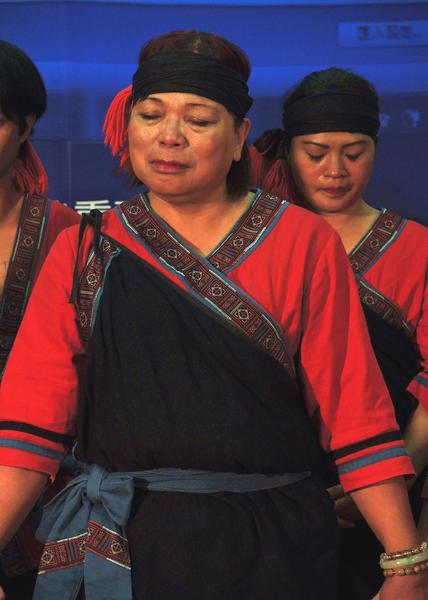 在8日遠赴日本的行前記者會上,由小林村民組成的「大滿舞團」,在台上表演平埔族西拉雅大武壟文化的傳統舞蹈,團員們跳舞力道十足、臉上笑容洋溢,但想起罹難親友與過去的村莊,仍多次偷偷拭淚。