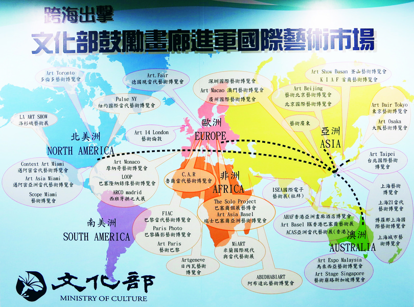 繼102年,台灣畫廊前進香港巴賽爾藝術展,獲得香港M+博物館、美國New Museum等機構策展合作邀約,成功拓展歐美、中東等市場後,今年文化部持續鼓勵視覺藝術產業跨海征戰國際藝術市場,由畫廊打前鋒,領軍台灣藝術家面向全世界。