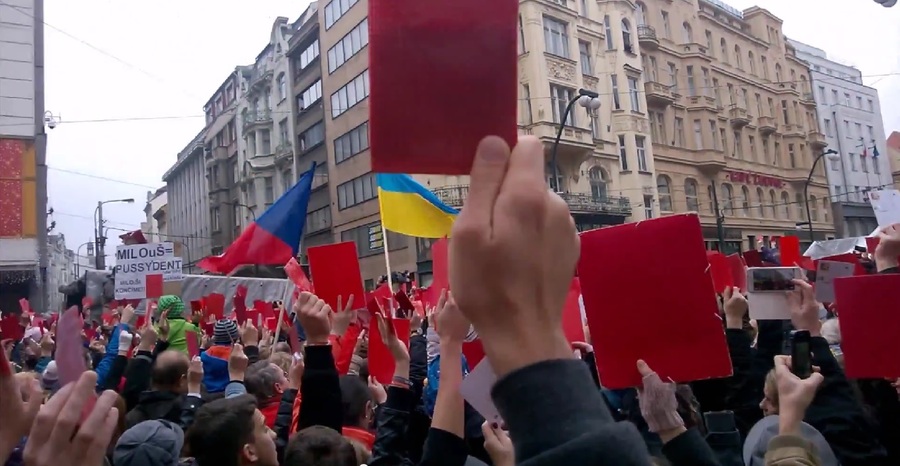 17日是捷克紀念脫離共產黨統治的天鵝絨革命25週年的日子,原本應該是國恩家慶的紀念日,卻因捷克人民不滿總統澤曼對俄國跟中國的親善態度,發生大規模的示威遊行,數萬民眾手裡舉著類似足球比賽中判出場的紅牌及標語,高喊「澤曼下台」、「我們不想成為俄羅斯殖民地」等口號。