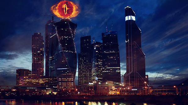 《今日俄國》報導,在電影《哈比人:五軍之戰》首映當天,俄羅斯的「閃光」團隊將把燈光特效設置在莫斯科的IQ大樓屋頂,索倫之眼將可維持數小時。藝術家表示,此一作品是為了要向《魔戒》系列電影致敬,畢竟《哈比人:五軍之戰》已是哈比人三部曲的最後一部,也是全系列相關影片的尾聲。