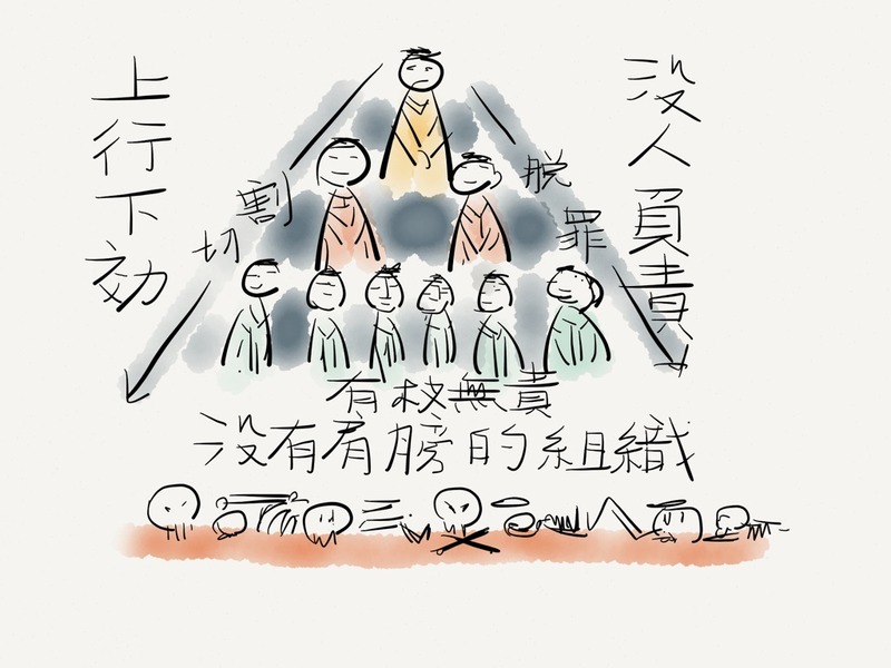 我發現了真相,但恐怕來不及了。我想離開時發覺自己跟昔日同事踩著同樣的步伐,走向同一間辦公室。看來政府是靠病毒來洗腦, 我在接觸過程中早被感染了。