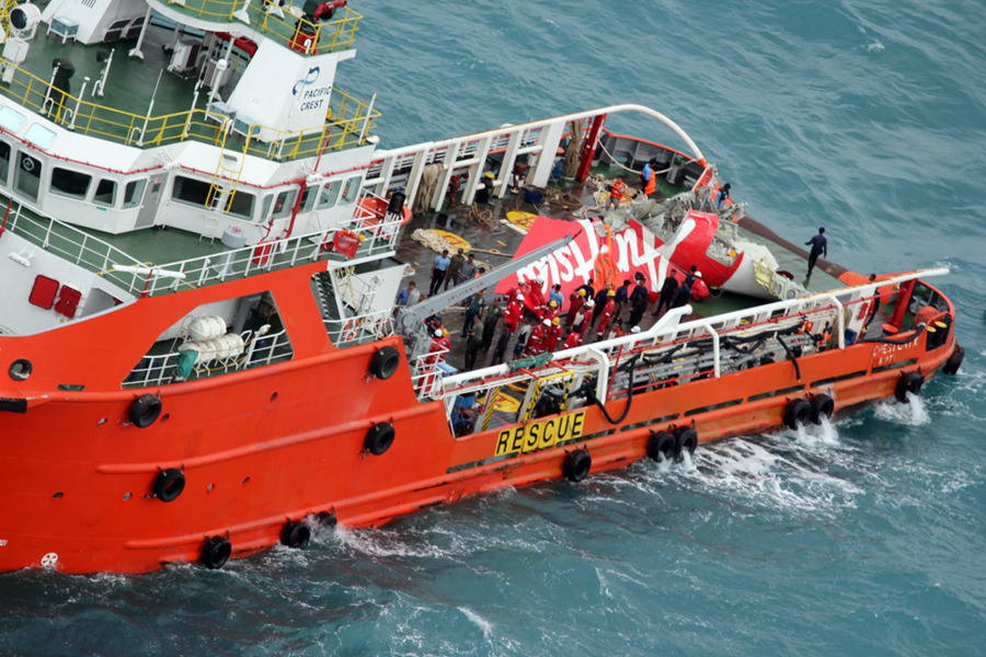 據印尼政府表示,由於爪哇海域的巨浪與強勁海流影響,海軍潛水伕仍難以潛近沉於海中的機身以及疑似機艙的機體殘骸,當地蒐救隊隊長也表示,由15名潛水伕組成的小組試圖打撈機體殘骸以供檢驗,卻因天候因素遲遲未能達成任務。