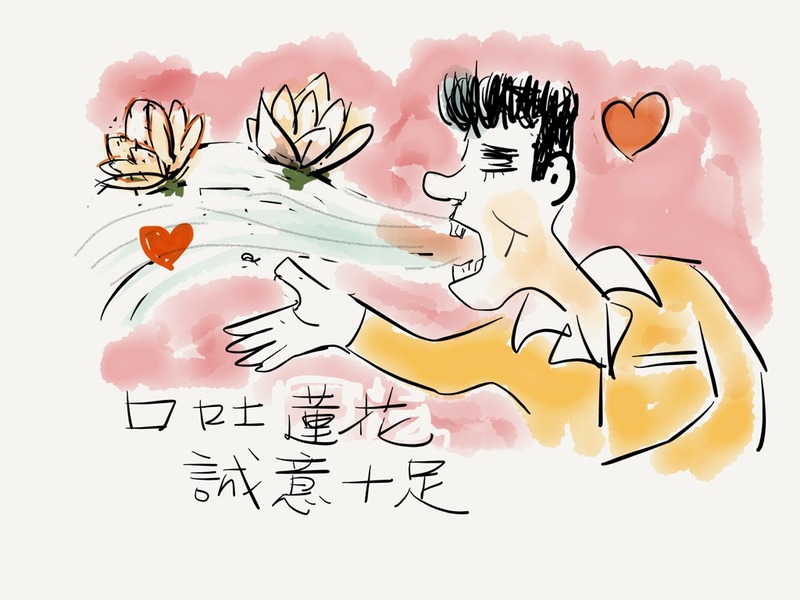 一朵朵蓮花、百合和玫瑰從他嘴中飄出,落在他的掌心,他將它們放到我手中。