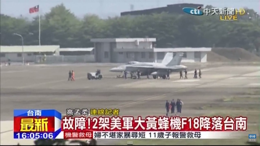 據航空軍事網站「Alert 5」2日報導指出,美國海軍陸戰隊第一飛行聯隊公共事務辦公室表示,1日降落在台灣台南機場的2架戰機,是隸屬於美國海軍陸戰隊第323打擊中隊的F-18C型大黃蜂戰機,駐地在美國加州聖地牙哥的米拉瑪陸戰隊航空站,現正於日本岩國基地進行為期6個月的西太平洋前進部署。