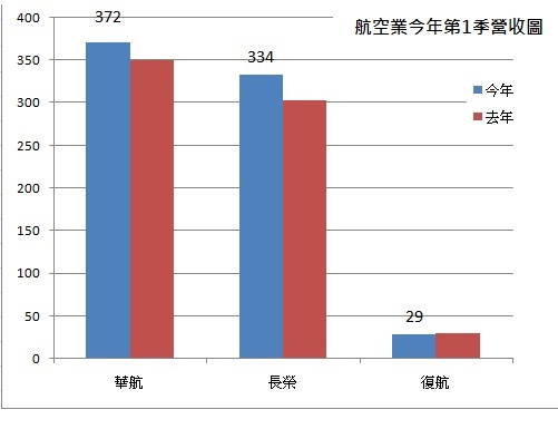 【台灣醒報記者鄭國強台北報導】航空業營收有喜有憂,航空雙雄華航(2610)、長榮(2618)公布3月分營收,合併第一季分別為372及334億元,較去年第一季各成長6.2%及9.2%,航空業在油價走低趨勢下踏出復甦的步伐。