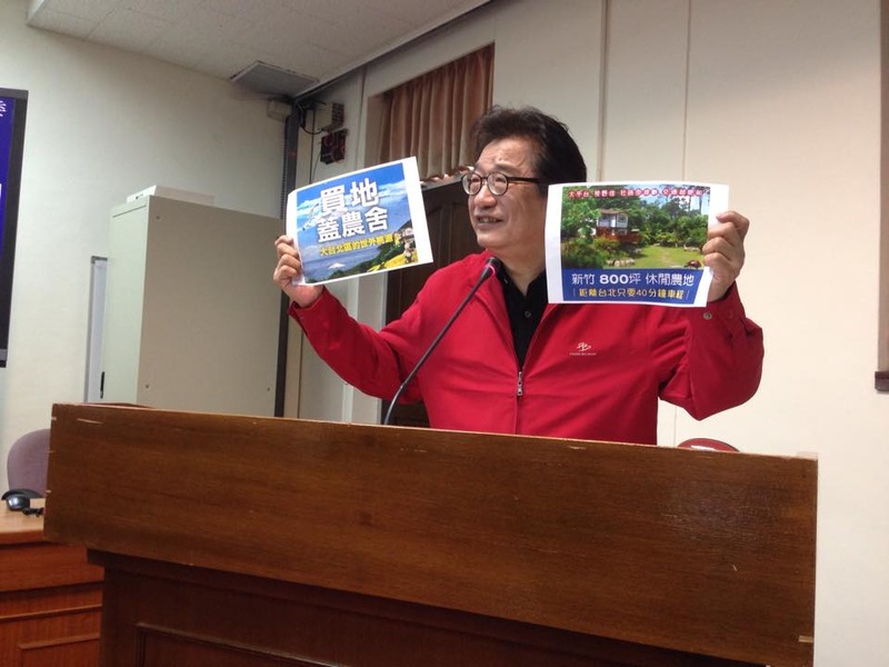 立委李慶華13日質詢時,拿出兩張網路廣告表示,廣告挑明「大台北區的世外桃源」、「新竹800坪休閒農地」的字眼,甚至設立的「不動產教學中心」,都是為了教導民眾將農舍變更為民宿的辦法,進而拉抬農地價格。李慶華直言,這樣惡質、堂而皇之的廣告,除了會使優良農地變少,讓青年農民務農愈來愈不容易之外,假農舍所排出的廢水更可能汙染農田。