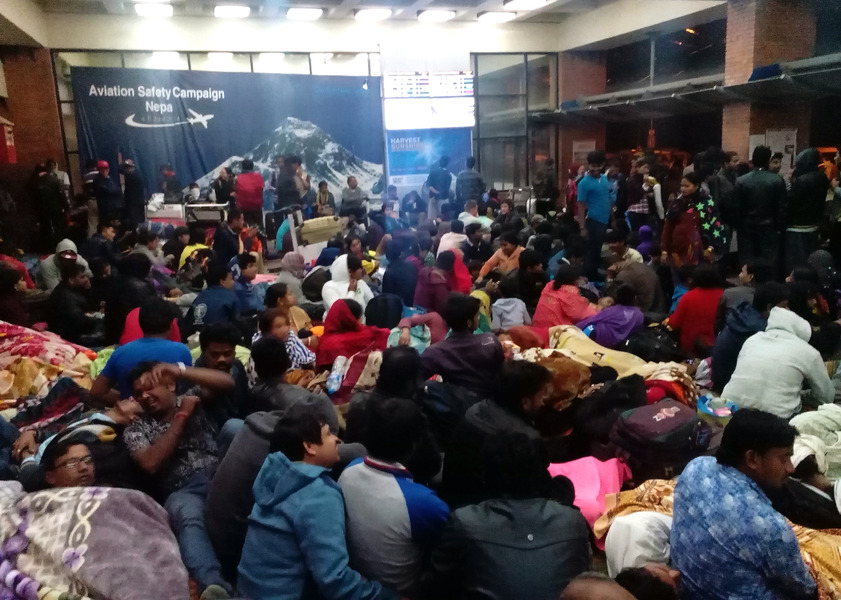 訊息始終無法統一是最讓人困惑的地方,一下說機場要關閉4天,一下又說機場已經開放,但是不斷在機場跟飯店之間奔波的尼泊爾賽車會代表跟我們說,下午急忙到機場的各國代表仍舊不得其門而入,僅有的幾家小雜貨店通通被搶購一空,機場滿滿的人擠得水洩不通,這個時候才證明了會長當時決定待在飯店真的很明智。