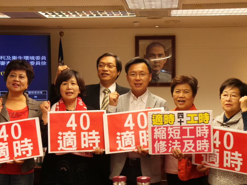 台聯黨立委賴振昌和民進黨立委劉建國卻質疑,政院版遲遲未見蹤影,立委本於職責有先提出修正草案的必要性,才能還給勞工一個公道。「既然有共識就一起割稻,送給勞工一個禮物不是很好嗎?」民進黨立委林淑芬忍住怒氣呼籲,既然工時調整勢在必行,藍綠兩邊都不要計較。最終,經在場勞動部官員加入討論後,通過每日工時不得超過8小時、每週不得超過40小時的修正條文。