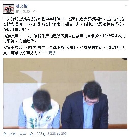 這次台北榮民總醫院陳志堯醫師因一件死胎案遭家屬控訴,並由立委出面「討公道」,事後網路媒體沃草創辦人柳林瑋先是跳出來說立委害榮總陳醫師請辭,要立委出來道歉,立委也照做了,後來才發現陳醫師早就請辭了,和這次事件無關,反過來,是柳林瑋出面道歉。