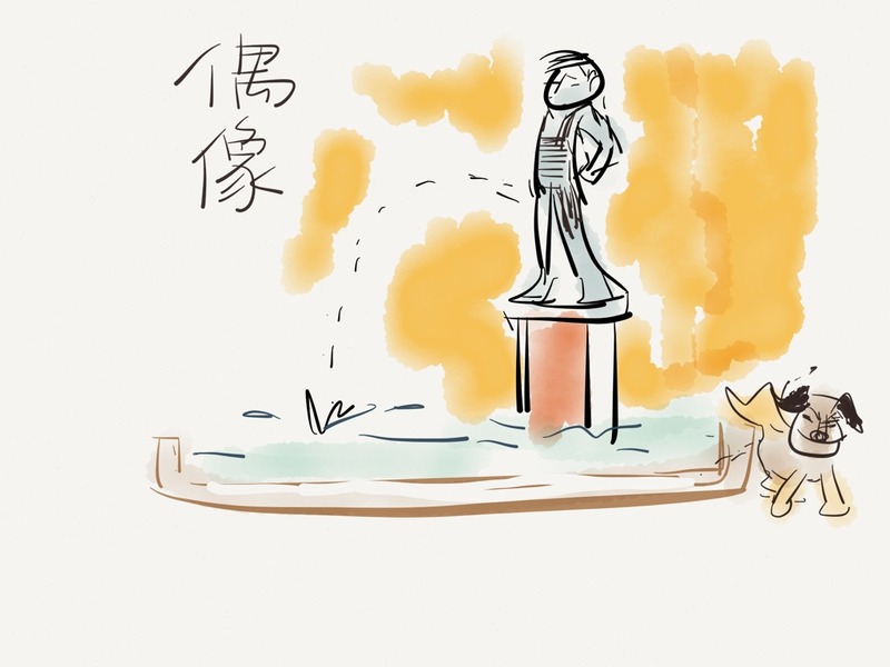 我對這件事很感興趣,挑了一個深夜在社區閒晃,不時偷瞄那銅像。它穿著學生制服,全身斑駁,眼眶褪色發白,看起來像盲人;腳底下的展示說明牌也早已脫落,無法得知當初鑄像的原由。只能從附近幾位老人家七拼八湊、口音不清的敘述裡,大致知道這是一位獲選本市傑出少年獎,最後卻早逝的男孩。有謠言說他因感情困擾,自我了斷。大家都識大體,沒人深究。