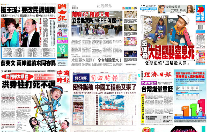 《台灣醒報》頭版頭條報導,南韓MERS疫情控制不住,8日首次出現學生感染案例,教育部長吳思華8日表示,教育部已呼籲各校落實學生至流行地區時的防護措施,並要求確實掌握台韓交流人數。但我國立委黃國書及陳碧涵皆質疑教育部作為太過消極,防疫宣導也不夠清楚。衛福部常務次長許銘能回應表示,會研議積極辦法。