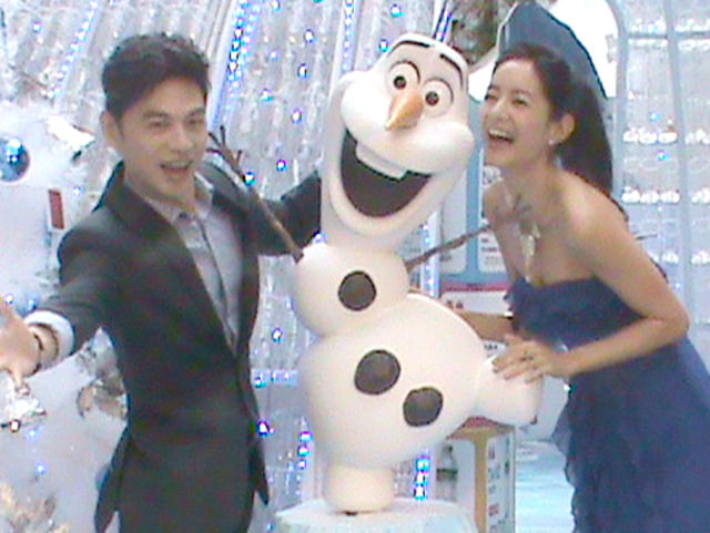 【台灣醒報記者張菀庭台北報導】「從來沒看過一個雪人那麼嚮往夏天的!」阿Ken與Janet為迪士尼電影《冰雪奇緣》擔任中文配音,笑料不斷。Janet要先克服「ㄙㄕ」不分的台灣國語,阿Ken也為此獻唱百老匯歌聲,將雪寶的配音維妙維肖。4日記者會特別在信義區打造一座冬季樂園,Janet不畏低溫,一身性感藍色小洋裝出席,阿Ken現場演唱,逗得路過圍觀民眾笑聲不斷。
