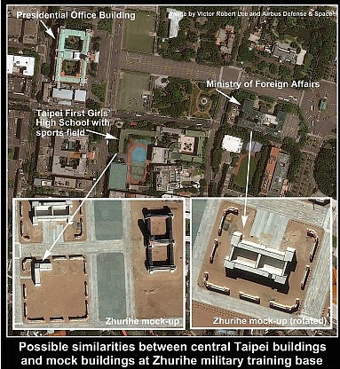 【台灣醒報記者余祥綜合報導】從衛星上看中共「朱日和軍演基地」,赫見精準模擬台灣總統府、外交部和北一女中的實體建築!《外交家》雜誌9日分析指出,比照衛星中朱日和軍事訓練基地與台北中正區後發現,總統府的模擬建築精準程度驚人,「因此上月中方模擬攻擊台灣總統府,不像官方解釋的例行性軍演那麼簡單。」另外,還發現有外交部和北一女中的模擬建築,推估由於北一女中操場是鄰近總統府最大的空地,因此成為解放軍直升機停放的首選。
