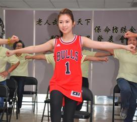 【台灣醒報記者賴仲偉台北報導】一首歐陽菲菲的《夢鄉》繚繞,雞排妹鄭家純領著信義老人中心的爺爺奶奶們伸手擺腿,逗趣的模樣讓在場的老人笑盈盈。雞排妹27日擔任紅心字會「關懷銀髮族」健康大使,宣導「保命防跌運動操」。她說,「這支有氧體操可以幫助老人保持良好體態,希望年輕人也可以帶著家中的長輩們一起跳。」