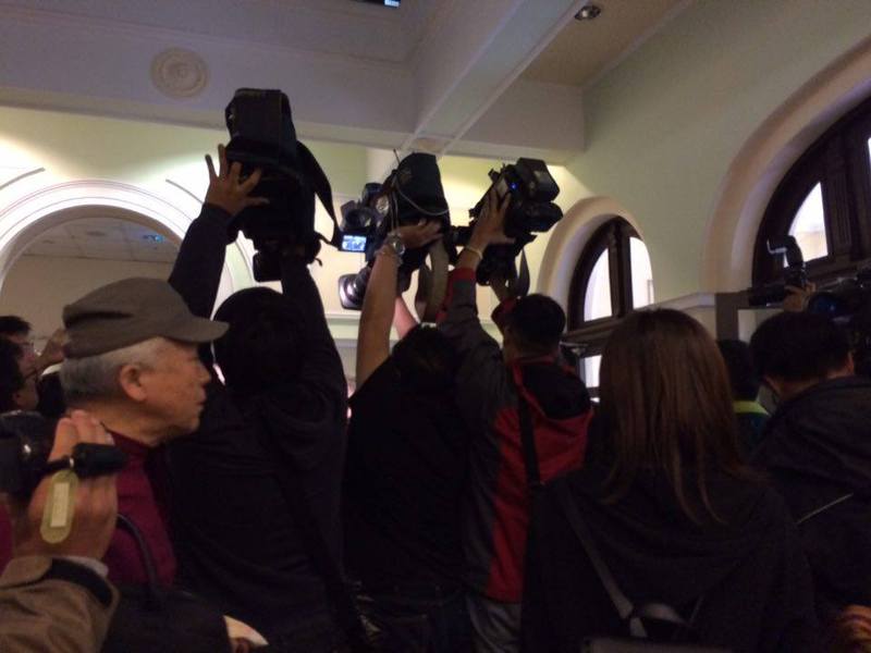 下午小英記者會,各大媒體還有很多財經媒體擠進狹小的台大醫院人文館要拍她,場面無敵混亂,我不小心卡進攝影記者人牆堆裡快被擠爛,覺得下一秒不是被腳踩扁就是被攝影機砸昏。我也被一個急躁的女記者大罵「妳就往前走啊!」為了搶畫面的媒體們又暴躁又凶神惡煞,好可怕。