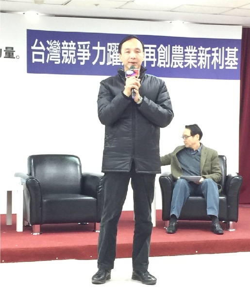 到了台北中央黨部現場,旁人幾乎感受不到朱立倫的疲憊,他拿起麥克風就大談農業政策,他說,台灣的農業應走向休閒化、科技化、品牌化及國際化4大方向。朱立倫解釋說,農民可以經營休閒農場,使得業務多元化、休閒化;結合大數據走網路通路銷售,為科技化;傳統農產重新包裝的品牌化以及面對加入TPP等地國際化。
