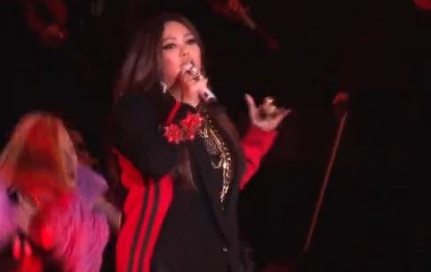 阿妹在101跨年演唱會上為八仙傷者祈福。(photo by YouTube影片截圖)