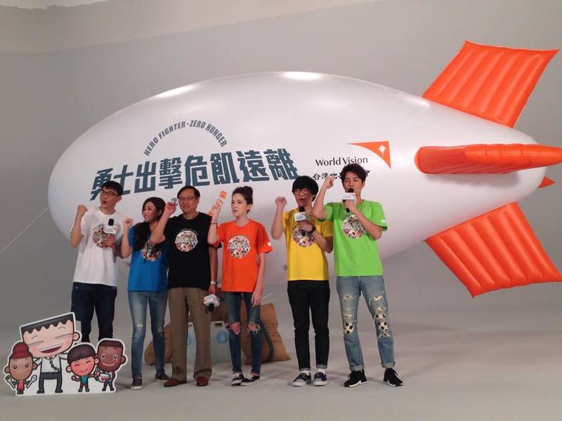 【台灣醒報實習記者柯廷樺台北報導】藝人A-Lin、吳克群、許瑋甯及盧廣仲, 分別身穿藍、綠、橘、黃T-恤,代言世界展望會第27屆飢餓三十「Hero Fighter, Zero Hunger 勇士出擊,飢餓遠離。」的活動,他們的T-恤上畫的都是插畫家馬克的作品