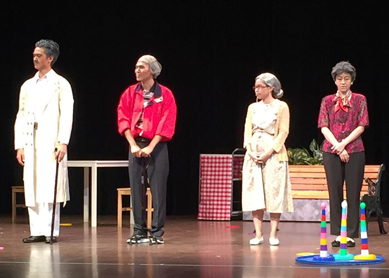 《暗戀養老院之沒事找麻煩》角色群,左起為阿飛、老王、阿雪及曹婆。(photo by戴昱愷/台灣醒報)
