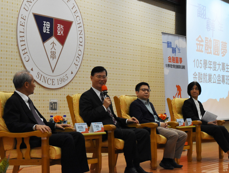 「105年度大專生金融就業公益專班」11日在致理科大舉行開訓典禮,由台灣集中保管結算所主辦,證券交易所股份有限公司等7個單位贊助,另邀請現任金管會主委、前集管所董事長丁克華擔任班主任。丁克華現場化身大學教授,針對金融業現況及未來侃侃而談,也大方回答同學提問。