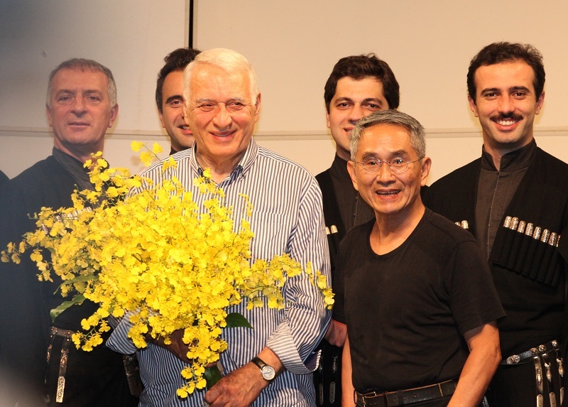喬治亞魯斯塔維合唱團每個人身材高大,穿著全黑喬治亞傳統服飾,身背子彈佩戴銀色匕首,腳蹬長靴,一站上舞台以驚人的複音吟唱震撼全場,宛如一支人聲交響樂團。林懷民表示,他們歷經25小時長途跋涉,從正下著雪的喬治亞抵達攝氏30度高溫的台灣,但在記者會上完全不受時差影響。