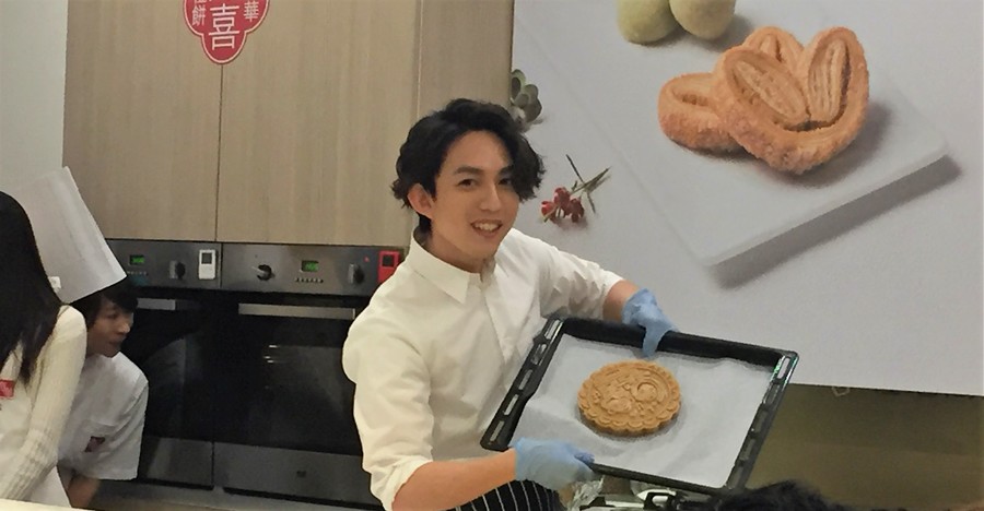 活動現場,林宥嘉與師傅先製作愛心形狀的巧克力豆餅乾,同時也對師傅深情款款地演唱歌曲《兜圈》,神情認真的師傅馬上流露溫暖的笑容。而後,他與師傅製作蓮蓉口味的喜餅,將渾厚的餅皮以圓狀方式包入扎實的內餡,再將圓型的餅壓入餅模當中後放入烤箱。