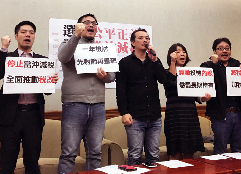 經民連召集人賴中強認為,由於台灣與大部分國家沒有租稅合作協議,我國可說是「全球肥咖條款(FACTA)的避風港,」所謂的減稅吸引投資人,根本就是脫褲子放屁、沒必要的政策。台灣勞工陣線秘書長孫友聯則直批,「鼓勵投機顯然是藍綠共識,」減稅根本無法促進公平經濟;他也呼籲,民進黨主席蔡英文應表態反對該法案。