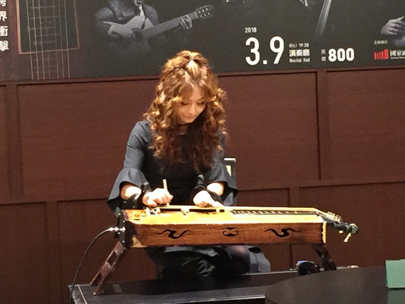 團長柳京和使用由傳統玄琴改良而成的「鐵玄琴」來演奏古樂,原本棉製的弦改成較硬的鐵,如此一來更能展現出現代音樂的強烈律動與清脆音感。鐵玄琴的撥奏方式相當特別,她也不吝現場向媒體示範,「左手拿著一個類似石頭製的方塊,以不同的力道滾動或按壓鐵弦,右手則是拿著一支小竹棒,有別於傳統以垂直撥弦的演繹手法,我加入了勾、挑的技巧,來創造更豐富多變的聲音。」