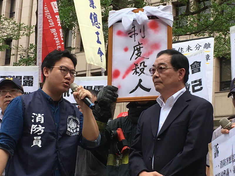 【台灣醒報記者蘇盈之台北報導】針對日前桃園敬鵬工廠大火,救災現場缺乏充分訊息,導致5名警消及2名移工白白喪命。消防員工作權益促進會及台灣移工聯盟1日在內政部門口召開記者會,斥責相關制度缺失導致人員無辜喪命。內政部消防署副署長江濟人出面回應表示,各部會將針對各別負責的範圍進行處理,卻引起現場抗議民眾不滿,質疑是中央在卸責地方。
