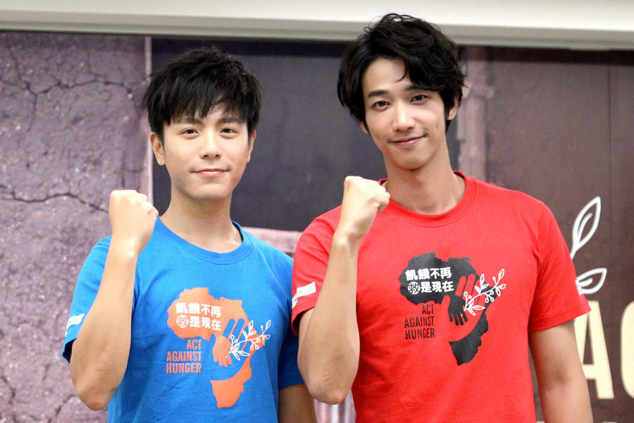 藝人韋禮安(左一)、劉以豪13日出席烏干達關懷行記者會,邀民眾參加飢餓30活動。(photo by藍苡瑄/台灣醒報)