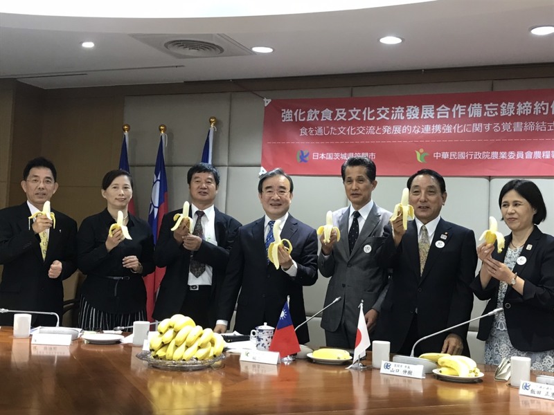 【台灣醒報記者吳婉瑜台北報導】台灣香蕉、滷肉飯將成為日本學童的營養午餐!24日農糧署與日本茨城縣笠間市簽署「強化飲食及文化交流發展合作備忘錄」。農糧署署長胡忠一表示,為推動強化飲食及文化交流,11月起台灣香蕉將作為笠間市學童的營養午餐水果,笠間市市長山口伸樹致詞時大讚:「台灣香蕉味道很棒!」