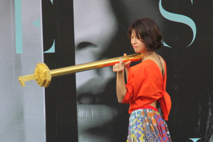 【台灣醒報記者祝潤霖台北報導】曾沛慈《謎之音》台北簽唱會開跑,連唱《怎麼能這樣》、《沒什麼不能愛》、《大風吹》三首主打歌,拿到祝賀銷售長紅的「No. 1」金色權杖,馬上比出各種搞怪姿勢,盡現昔日「黑框眼鏡」女孩率性本色。曾沛慈一身橘色露背裝亮相,熱天載歌載舞大汗淋漓。