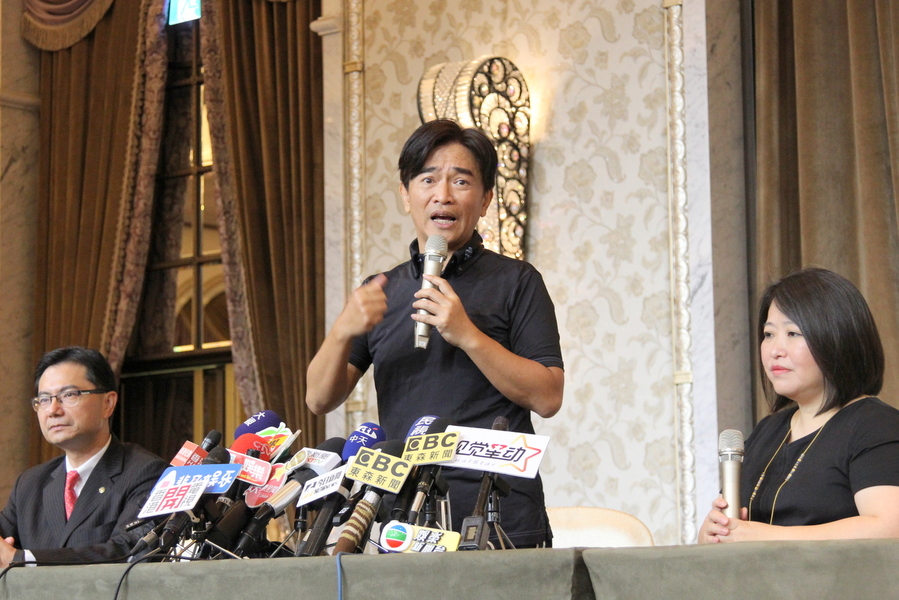 吳宗憲(左)在記者會上談笑風生,顯示自己問心無愧的大無畏。(photo by 祝潤霖/台灣醒報)