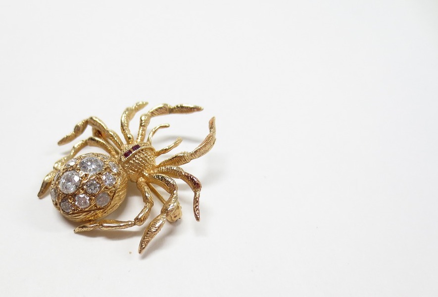 最近當紅的一隻蜘蛛,是英國最高法院的庭長海爾女爵胸前的那隻胸針。有學長說,海爾女爵似乎很喜歡動物胸針。仔細看她的胸針系列,有蜻蜓、蝴蝶、毛毛蟲、青蛙等,蜘蛛就有兩款。有學長說,她這樣很像幻影旅團(日本動漫)成員,不過幻影旅團的蜘蛛有十二隻腳。