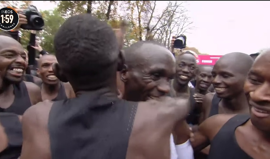 作為當今馬拉松世界紀錄保持人,基普喬蓋在去年柏林馬拉松締造的正式紀錄是2小時1分39秒。基普喬蓋參加的是石化公司INEOS的「1:59」計劃,儘管昨日在維也納的成績為1小時59分40.2秒,卻因為有配速員陪跑、腳踏車提供補給以及非正式比賽等理由,不列入正式的世界紀錄。