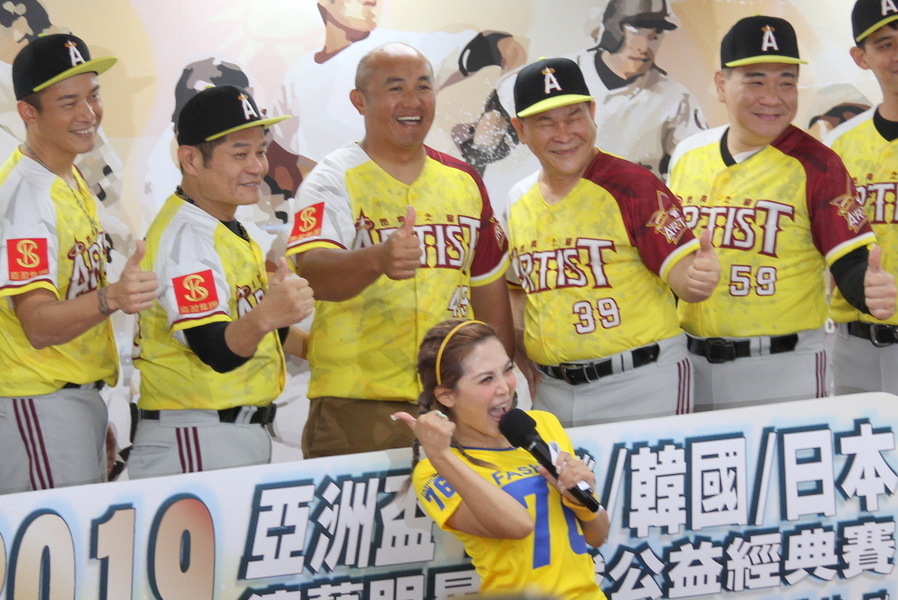 澎恰恰(左3)一直希望辦成亞洲另類明星經典棒球賽,今年終於完成夢想,他說有信心把冠軍盃留在台灣。(photo by 祝潤霖/台灣醒報)