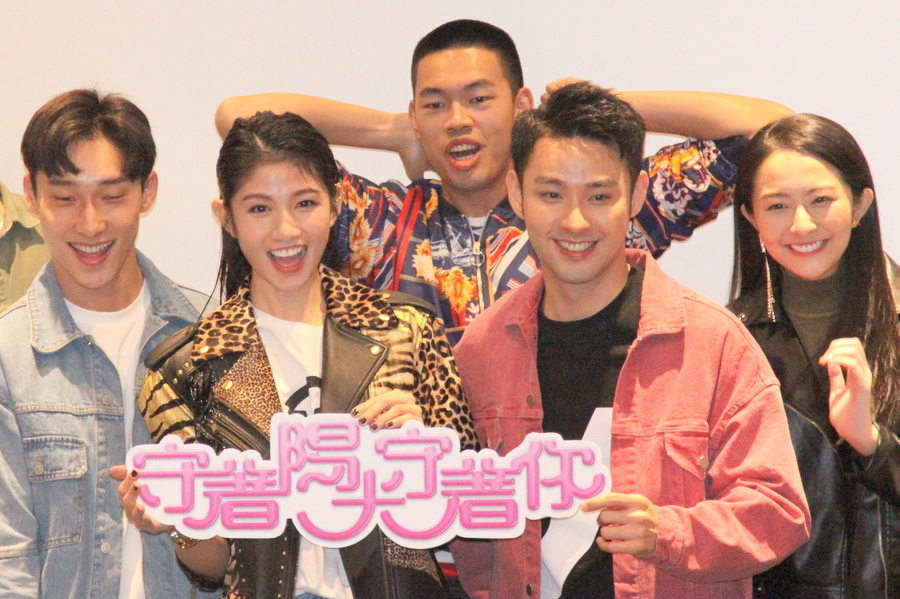 《守著陽光守著你》主要演員宣傳,「小蝦」陳大天(右)擺出各種誇張pose,讓人直呼是在拍武打片嗎?(photo by 祝潤霖/台灣醒報)