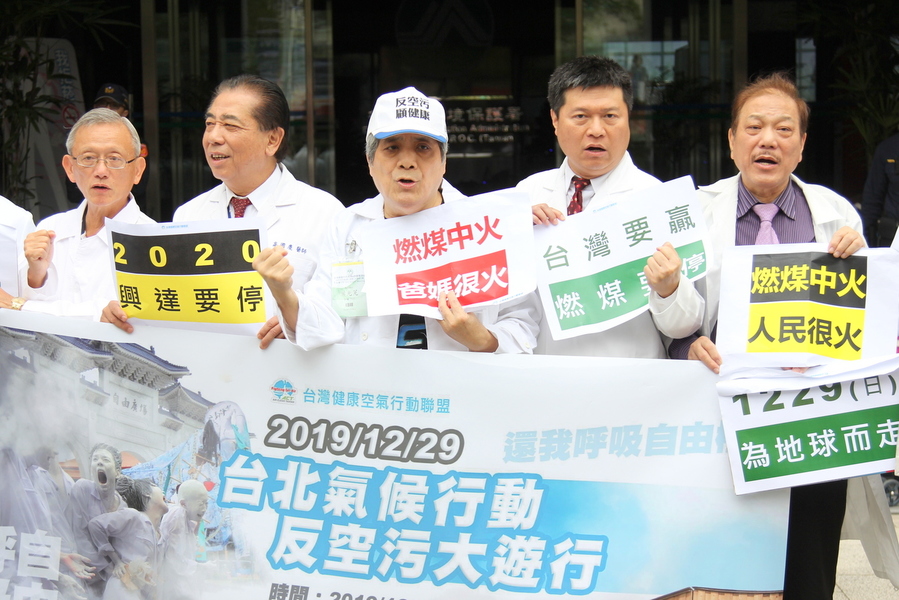 診所協會全聯會理事長廖慶龍(中)指出,PM2.5等空污濃度沒有安全值,台灣只有脫煤才有平安夜。(photo by 祝潤霖/台灣醒報)