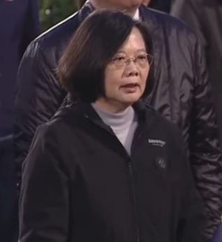 總統蔡英文與副總統陳建仁夫妻著輕便的保暖服裝,人手一隻國旗步出總統府,在台北市長柯文哲及總統府秘書長陳菊的陪同下,於升旗典禮中唱國歌,有別於以往唱至「吾黨所宗」時的有所保留,蔡英文這次則全程將國歌唱完。