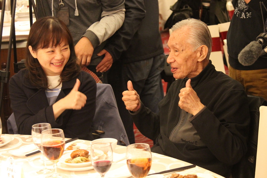 會場冠蓋雲集,阿姑周遊(右)等資深藝人齊聚一堂,台上歌舞不間斷,眾人歡樂合唱懷舊名曲。(photo by 祝潤霖/台灣醒報)