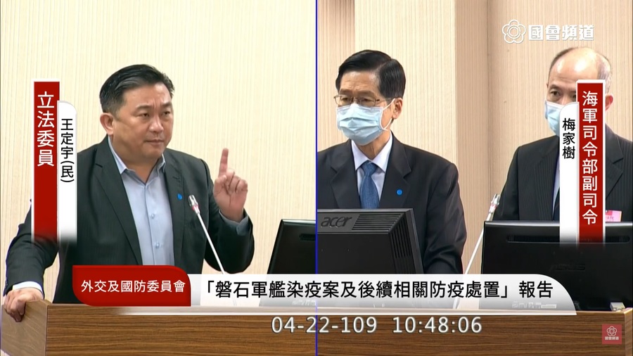 「然而,在艦指部的報告中發燒的病例都消失了!」王定宇指出,這是第一個出問題的環節,第二個環節為由艦指部籌組的「聯檢小組」14日登艦檢疫時,是否納入「嗅味覺異常的項目」?梅家樹回應沒有,對此王定宇痛批,把關官兵放假事宜的聯檢小組,怎麼能沒有列入疾管署新增病徵,簡直是開天下玩笑。