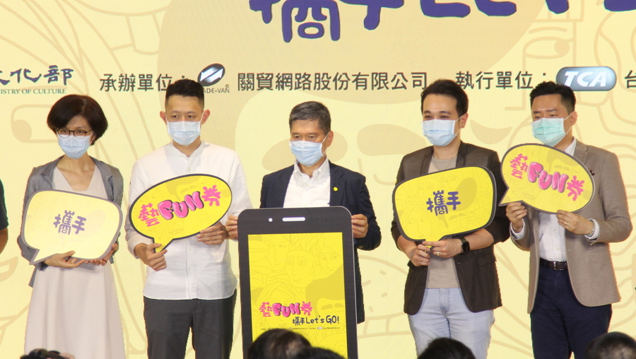 文化部長李永得(右3)宣布,將於7月22日推出共200萬份、每份600元之「藝FUN券」,預計將創造50億以上產值。(photo by 祝潤霖/台灣醒報)