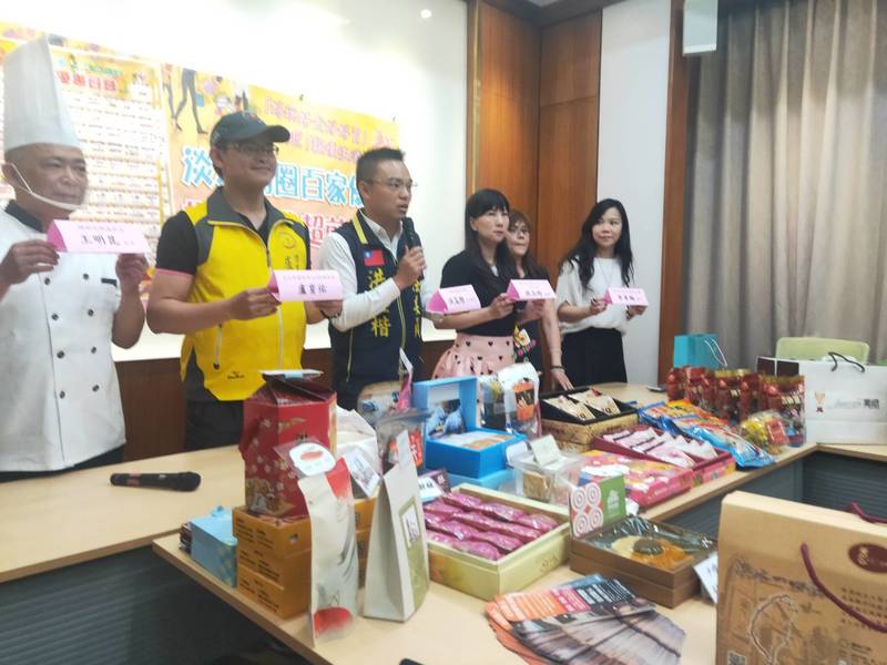 「淡水商圈從來沒有舉辦過這麼大規模的優惠活動!」記者會現場擺滿了年輪蛋糕、小魚干、煙燻鐵蛋、魷魚絲等淡水知名的產品,盧育佑說,店家都對於接下來的解封、國旅政策非常期待,先推出聯合優惠,民眾只要從捷運站出來,走過的每家店都會有優惠,而且防疫措施都很完善,請民眾安心。
