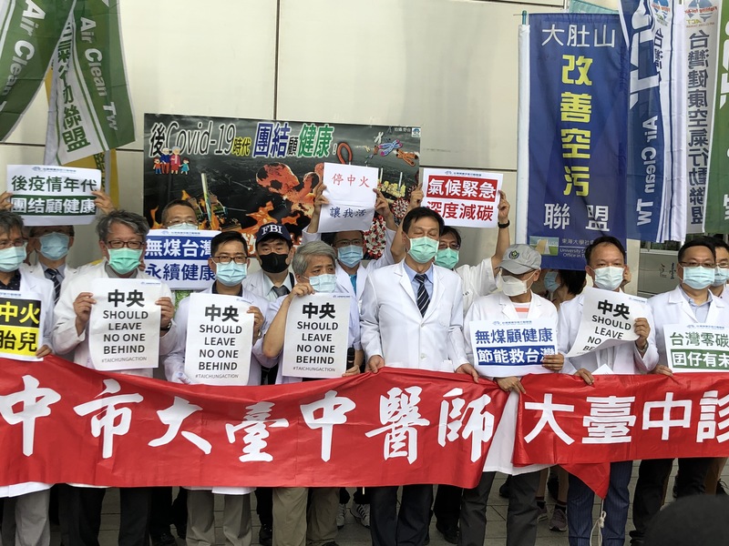 【台灣醒報特派員劉東皋台中報導】「台灣零碳排,嬰仔有未來!」中火重啟被撤照的燃煤舊機組,引起中部眾多民眾不滿及抗議。台灣健康空氣行動聯盟1日結合近30位中部醫師,也在市議會前廣場,發起「後疫情時代團結顧健康無煤中火救胎兒」絕食抗議活動,要求中央不能重啟中火2、3號機組。