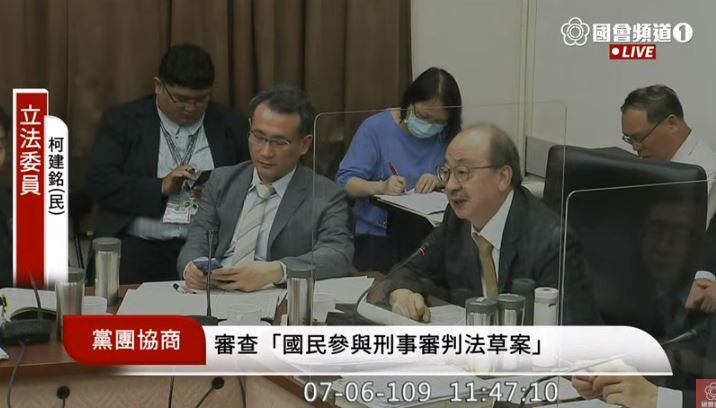 因此在一早的《國民法官法》朝野協商中,國民黨團總召林為洲便對此表示不滿,也對民進黨不管以前黨綱規定要支持陪審制,結果現在卻要推行限制諸多的參審制感到無奈,根本沒有聽見在野黨與民間司改團體的心聲。而且他也說,過去擔任司法院秘書長的呂太郎曾與公民團體討論陪審參審兩制併行的法案,結果當了大法官之後卻噤聲不提。